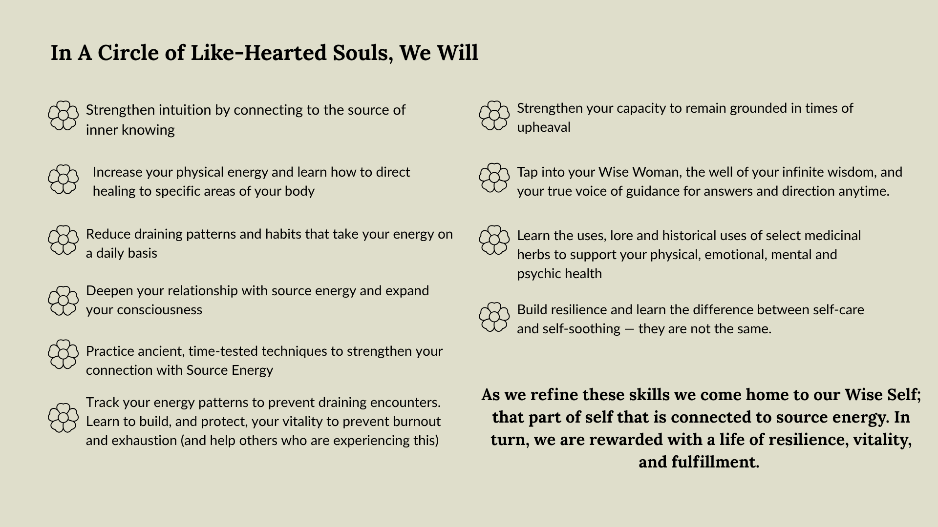 "I received so much more from this class than I ever expected. It went further and deeper than I even considered. Thank you for this life-changing, nourishing program." - Teresa Miller, graduate 2025